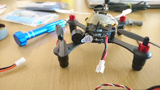 Der LDARC Q100 war für den Anfang mit fpv schon ganz nett, denn erst kurz nachdem ich diesen aufgebaut hatte -und meine erste fpv-Brille kaufte- wollte ich was neues und mehr stabiles haben. Der Q100 gehört zu keiner Zeit zu den "wirklich gut fliegenden" Kwads (wohl auf Grund der seltsamen Form einer X/dead-cat/Y-Tail Mischung). Ich suchte ein wenig nach "True-X" und möglichst aus Carbon und brushed (8520 Coreless Motoren), und fand bei AliExpress genau das richtige für 6 EUR. Racerstar-Motoren und ein realacc F3 OMNIBUS Flight Controller, sowie eine von JMT vertriebene vtx/cam Kombination waren auch schnell gefunden. Da ich noch einige FS-A8S v2 Empfänger liegen hatte, war der Aufbau auch schnell erledigt (zumindest nachdem das Warten beendet war). Ich experimentierte ein wenig mit der neuen Version von betaflight und den Einstellungen für das OSD, was mich mehr oder weniger glücklich machte. Heute existiert dieser miniKwad/microKwad nicht mehr, da ich auf Brushless miniKwads/microKwads umgestiegen bin. Brushed gibt es nur noch den LDARC Q100 und die "tinyWhoop" vom Kind.